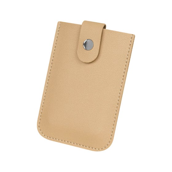 Tarjetero con interior deslizable y cerrado con broche para mayor seguridad. Cuenta con 4 prácticos separadores plastificados que facilitan la clasificación y acceso rápido. Material: Curpiel /PVC. Medida: 7.5 x 12 cm. Color de tinta: BE/N. Técnica: Serigrafía. Área: 4 x 4 cm. Colores: Beige y negro.
