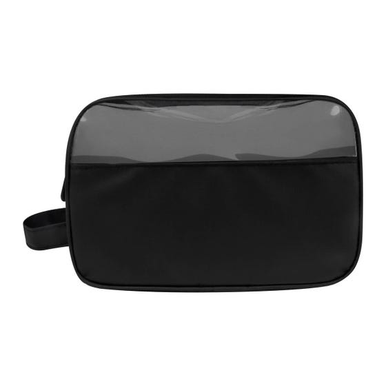 Neceser de poliéster resistente al agua. Incluye una mica PVC en el compartimento frontal para una fácil visualización de su contenido. Material: Poliéster / PVC. Medida: 25 x 16 x 12 cm. Color de tinta: Negro. Técnica: Serigrafía. Área: 15 x 5.5 cm.