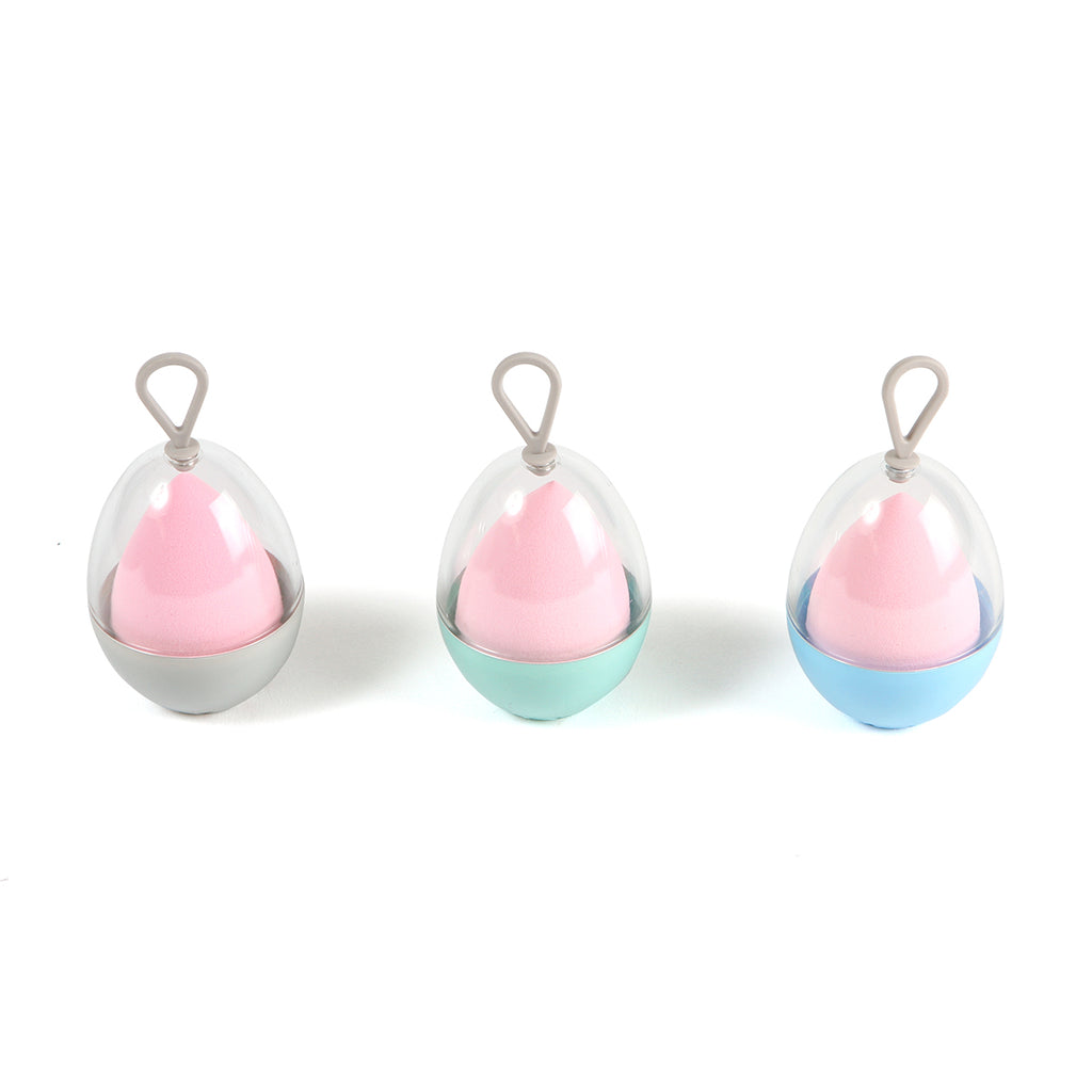 Esponja para maquillaje, incluye estuche con agarradera. Material: Poliuretano. Medida: 4 x 6 cm. Área de impresión: 3 x 3 cm. Peso del producto: 0.050 kg. Colores: Azul claro, gris y verde claro. Técnica de impresión: Serigrafía y tampografía.